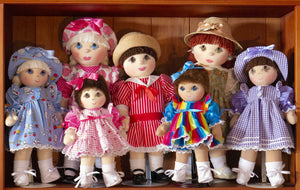 All of our dolls and accessories are handmade with love by Kaye Keen in Carterton, New Zealand. Each doll is unique with a hand embroidered face and beautiful handmade features and clothes.